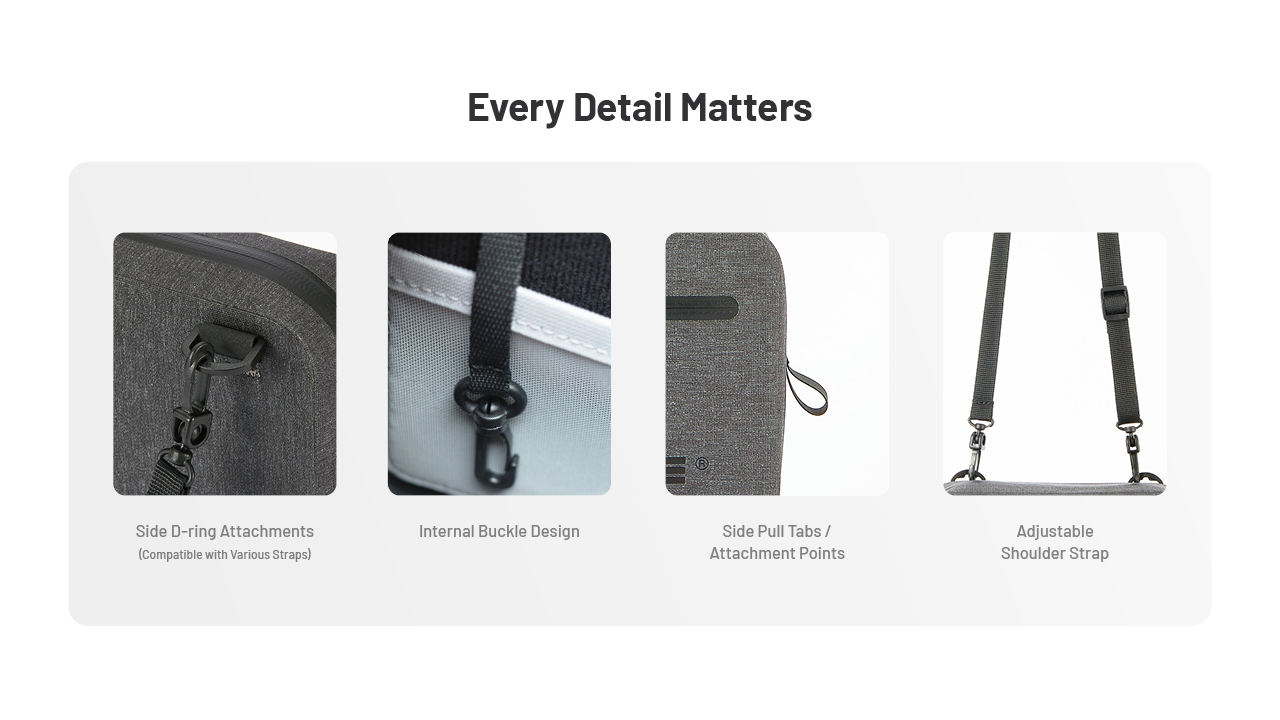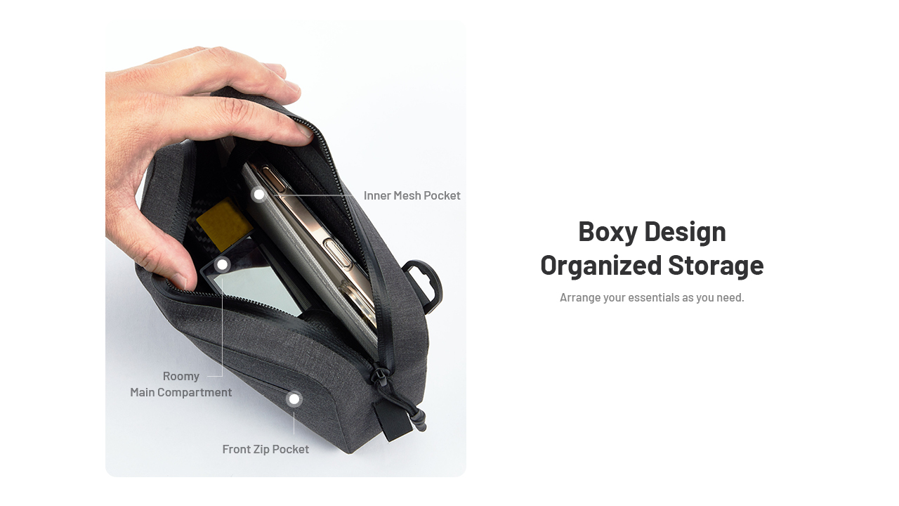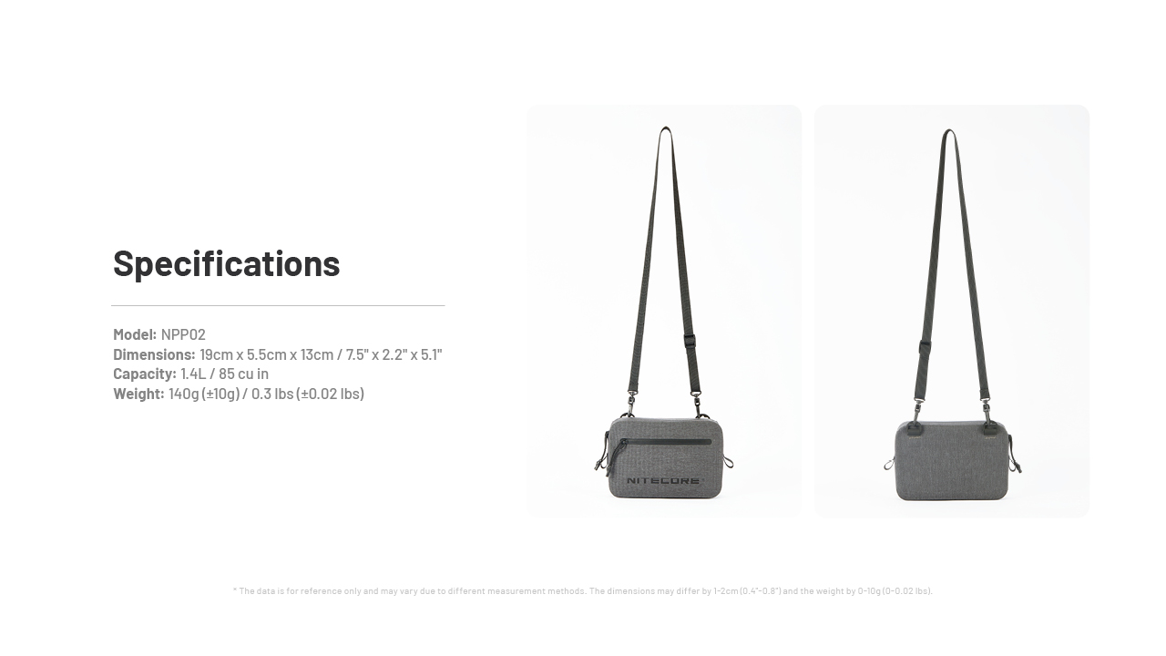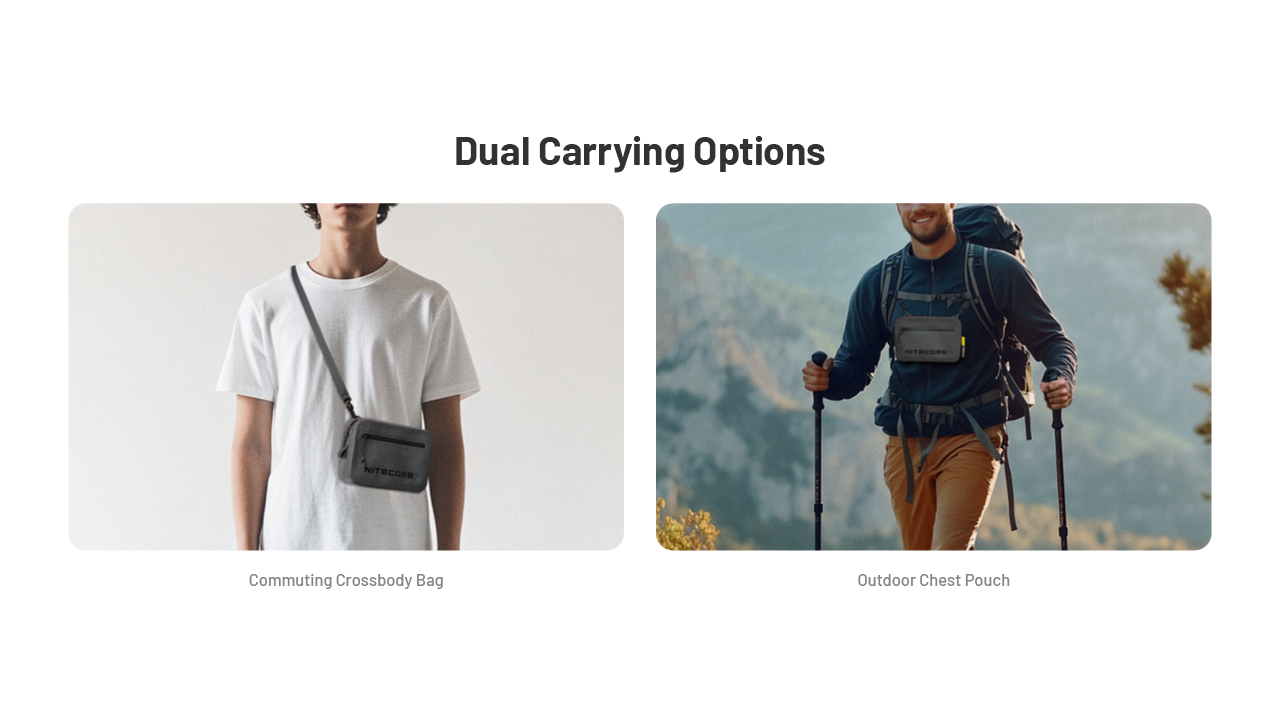 The Nitecore NPP02 is a compact, water-resistant crossbody pouch designed for everyday carry and outdoor use. Measuring 19 cm × 5.5 cm × 13 cm with a 1.4 litre capacity and weighing approximately 140 g, it’s made from durable 900D TPU-coated cationic fabric with YKK waterproof zippers. It features a main compartment with an internal mesh pocket, a front zippered pocket for quick-access items, and multiple attachment points including side D-rings. The adjustable strap allows it to be worn crossbody or as a chest pouch, making it ideal for securely carrying essentials like phones, wallets, and cables in a sleek, urban-friendly design.